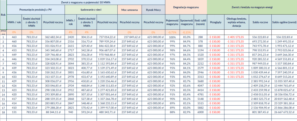 Dobór magazynu i mocy umownej