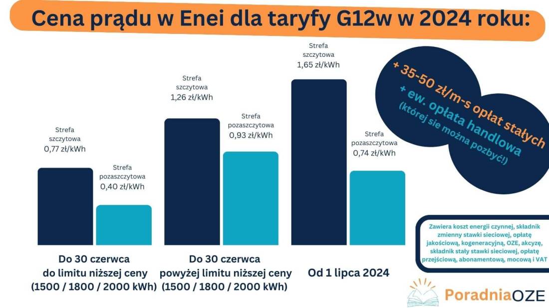 Aktualizacja październik 2024 - Enea wprowadziła taryfę dynamiczną. Aktualizacja czerwiec 2024 - rząd wprowadził limit ceny energii czynnej dla gospodarstw domowych w wysokości 0,5 zł / kWh (patrz: Informacja prasowa, postęp prac nad ustawą). Cena prądu dla G11 wyniesie zatem ok. 1 zł/kWh. Na zmianie najbardziej skorzystają posiadający taryfy G12 i G12w. Poniższe wyliczenia i … Czytaj dalej Enea – taryfy cennik 2024 z omówieniem