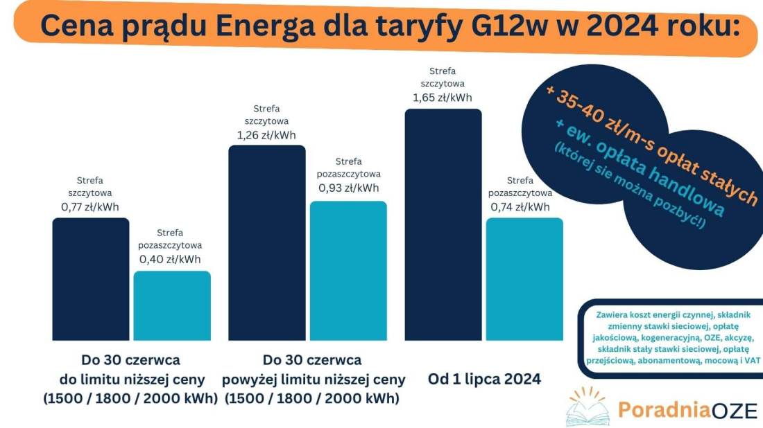 Aktualizacja październik 2024 - Energa wprowadziła taryfę dynamiczną. Aktualizacja czerwiec 2024 - rząd wprowadził limit ceny energii czynnej dla gospodarstw domowych w wysokości 0,5 zł / kWh (patrz: Informacja prasowa, postęp prac nad ustawą). Cena prądu dla G11 wyniesie zatem ok. 1 zł/kWh. Poniższe wyliczenia i dane zostały zaktualizowane. Energa Operator S.A. to trzeci pod … Czytaj dalej Energa – taryfy cennik 2024 z omówieniem